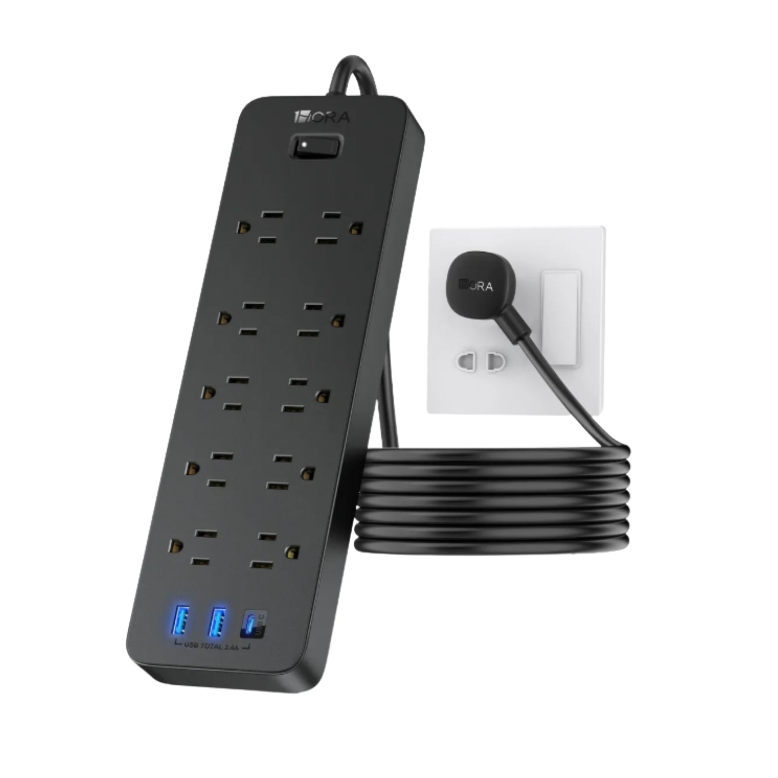 MOCT002 BARRA MULTICONTACTO 10 SALIDAS 1.5M 2USB-A 1USB-C 1 HORA CON 1 PZ O CAJA CON 30 PZS
