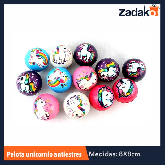 ZJ-0327 PELOTA UNICORNIO ANTIENTRES 8 CM CON 12 PIEZAS, O CAJA CON 40 PQTS