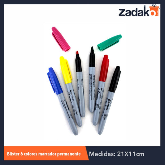 GPM-0238 ZP-0409 BLISTER 6 COLORES MARCADOR PERMANENTE, CON 1 PZ O CAJA CON 200 PZS