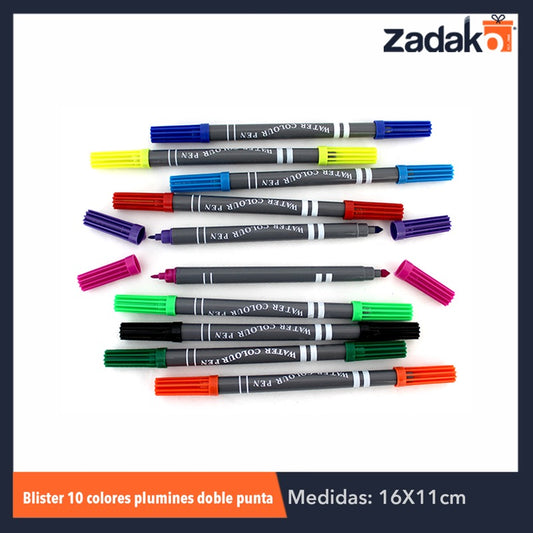 GPM-0220 ZP-0384 BLISTER 10 COLORES PLUMON DOBLE PUNTA, CON 1 PZ O CAJA CON 240 PZS