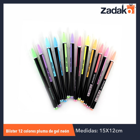 GPM-0206 C-556-35 ZP-0413 BLISTER 12 COLORES NEON PLUMA DE GEL, CON 1 PZ O CAJA CON 240 PZS