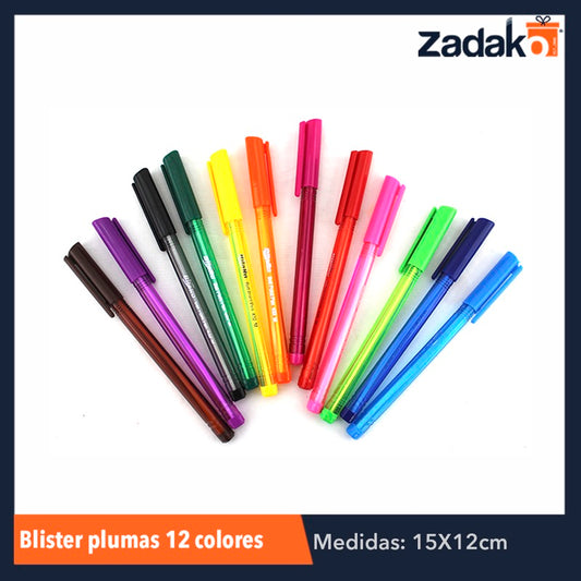 GPM-0216 ZP-0578 BLISTER PLUMAS 12 COLORES, CON 1 PZ O CAJA CON 240 PZS