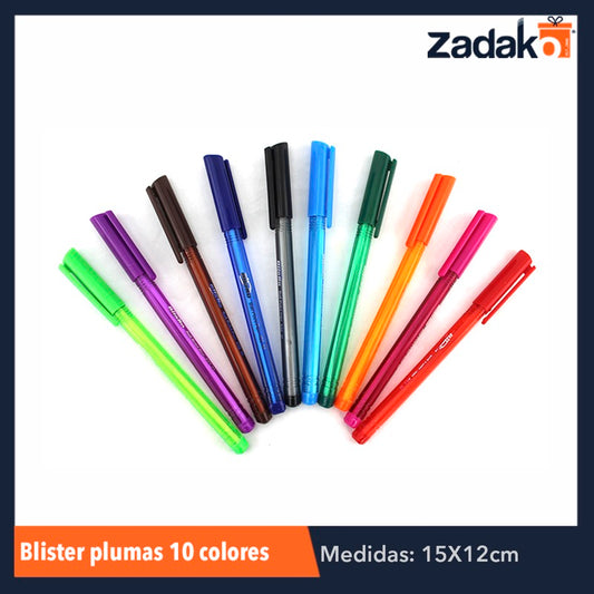 ZP-0577 BLISTER PLUMAS 10 COLORES, CON 1 PZ O CAJA CON 288 PZS