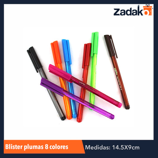 GPM-0214 ZP-0576 BLISTER PLUMAS 8 COLORES, CON 1 PZ O CAJA CON 360 PZS