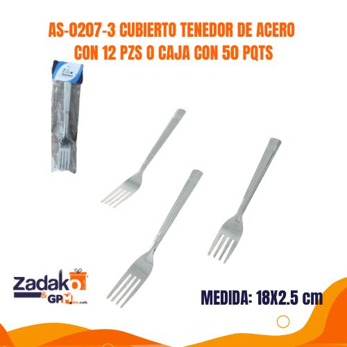 AS-0207-3 CUBIERTO TENEDOR DE ACERO CON 12 PZS O CAJA CON 50 PQTS