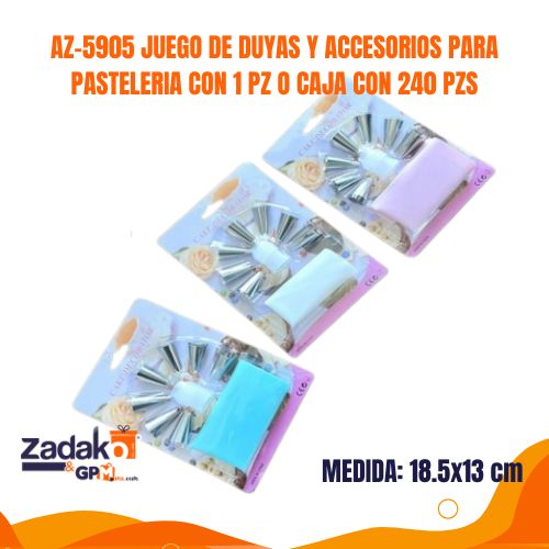 AZ-5905 JUEGO DE DUYAS Y ACCESORIOS PARA PASTELERIA CON 1 PZ O CAJA CON 240 PZS