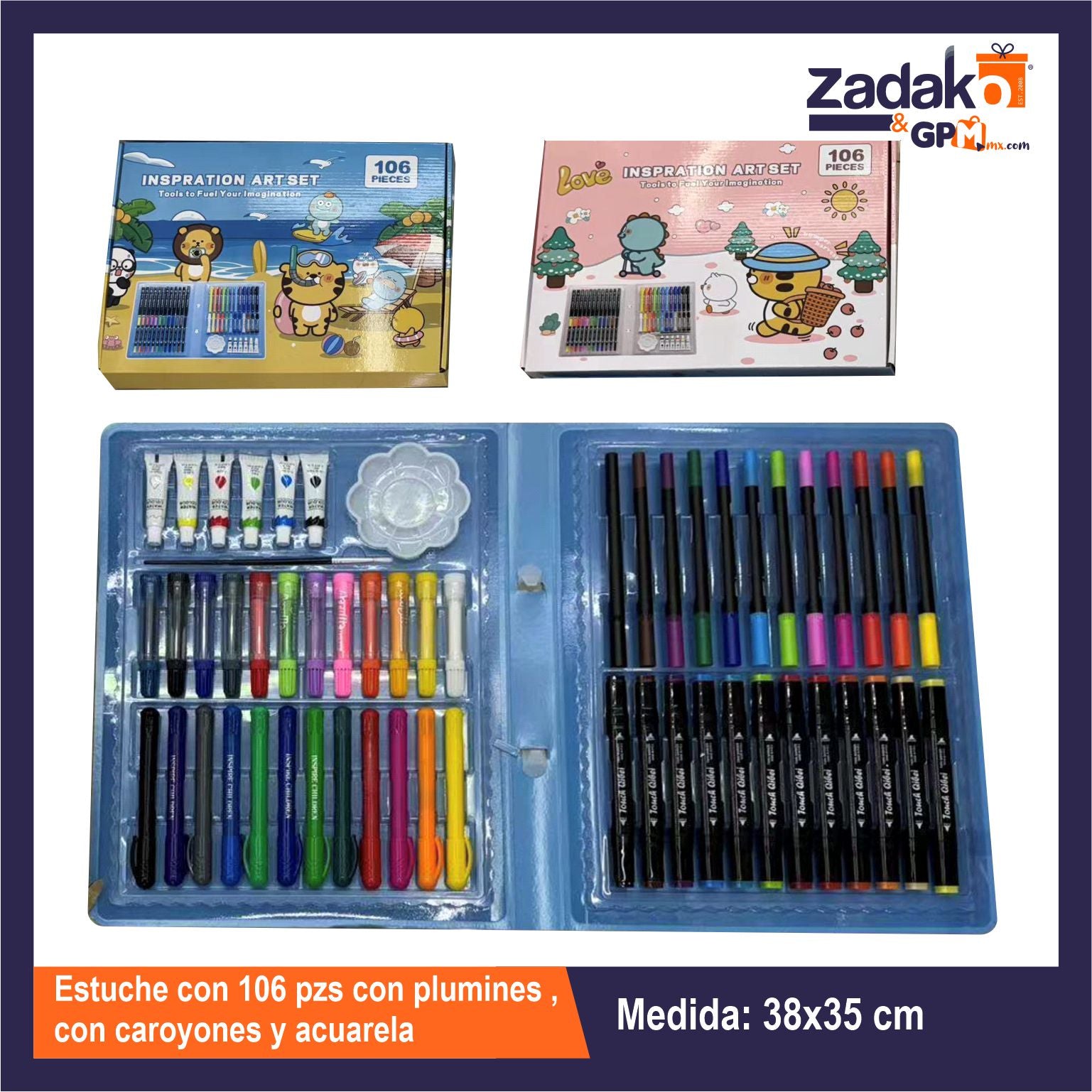 GPM-0163 HFY-12942 ESTUCHE CON 106 PZS CON PLUMINES , CON CRAYONES Y ACUARELA CON 1 PZ O CAJA CON 20 PZS