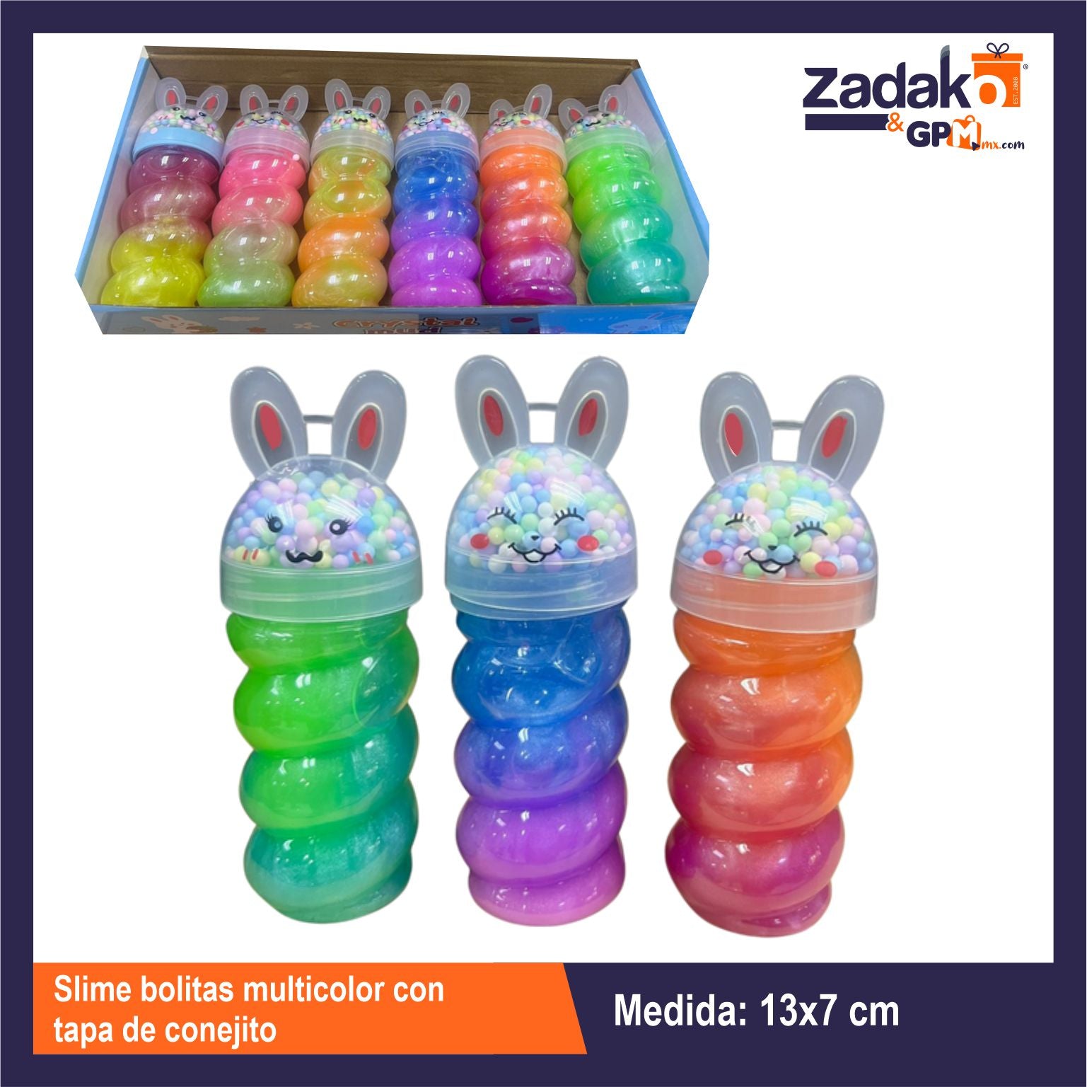 GPM-0537 SLIME BOLITAS MULTICOLOR CON TAPA DE CONEJITO CON 6 PZS O CAJA CON 24 PQTS