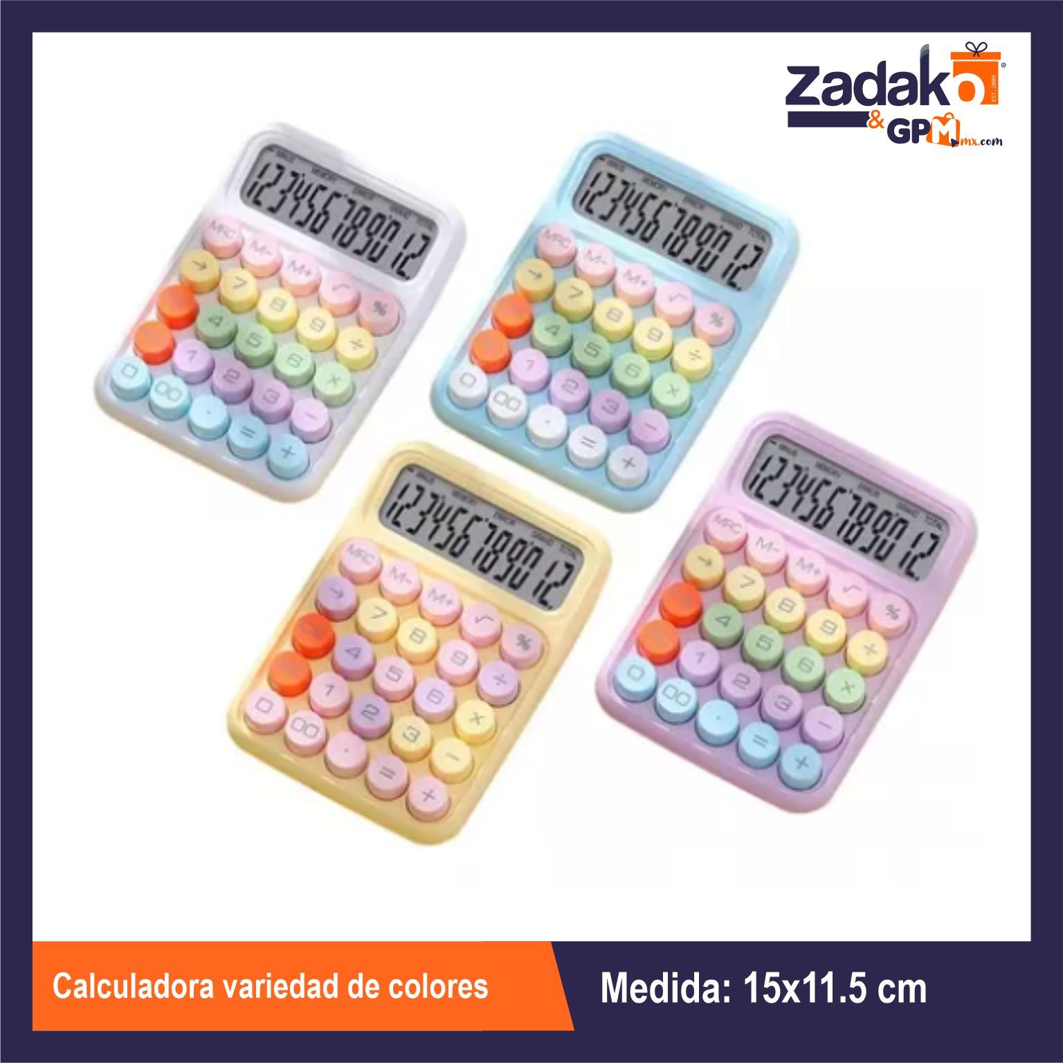HFY-10868 CALCULADORA VARIEDAD DE COLORES 15.5*11.5CM CON 1 PZ O CAJA CON 96 PZS