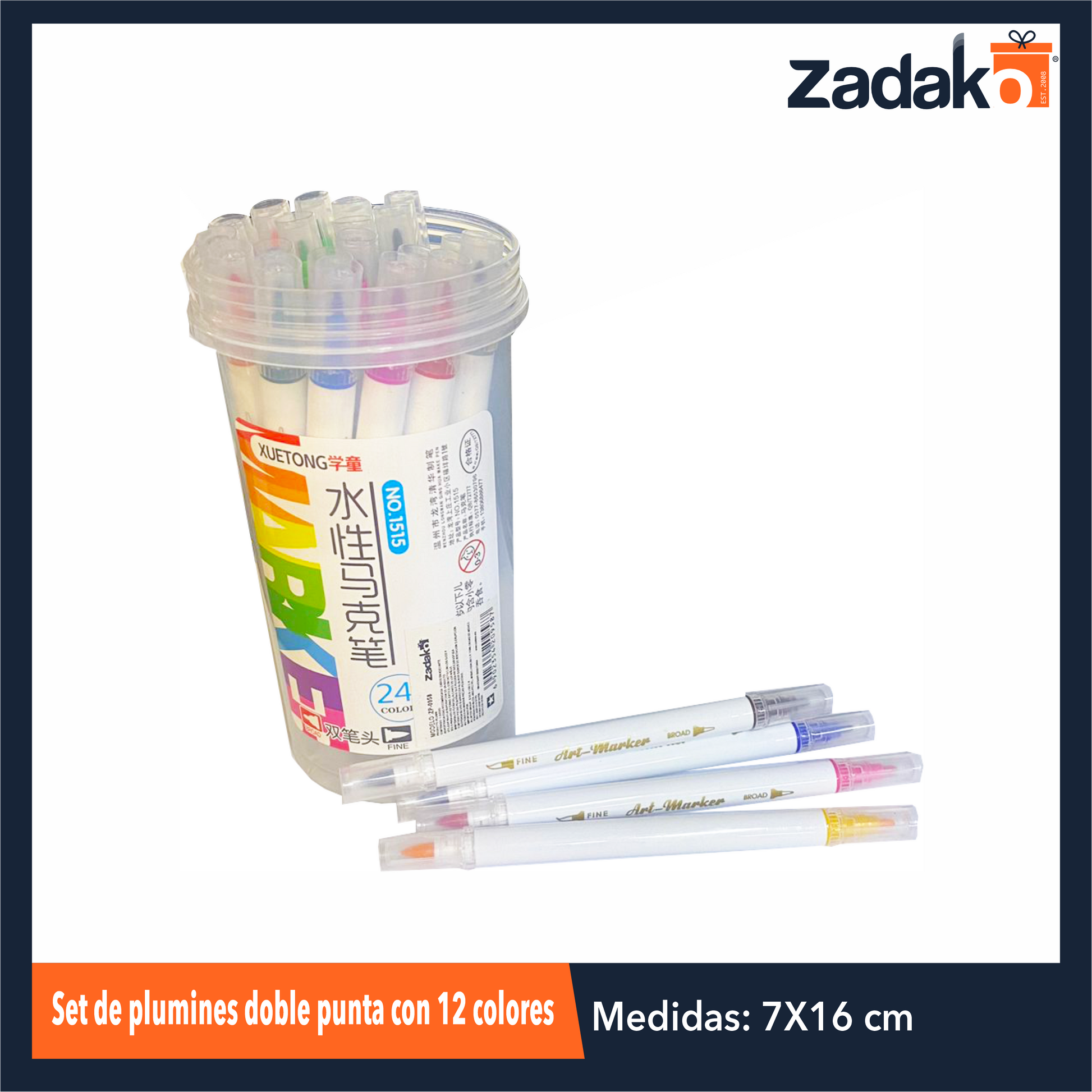 ZP-0956 SET DE PLUMINES DOBLE PUNTA CON 12 COLORES CON UNA PZ O CAJA CON 144 PQTS