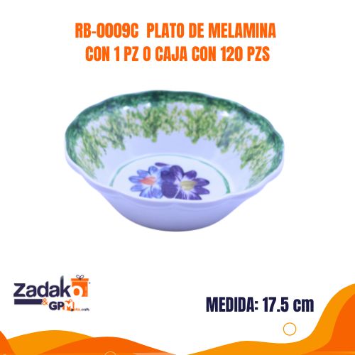 RB-0009C PLATO DE MELAMINA 17.5 CM CON 1 PZ O CAJA CON 120 PZS