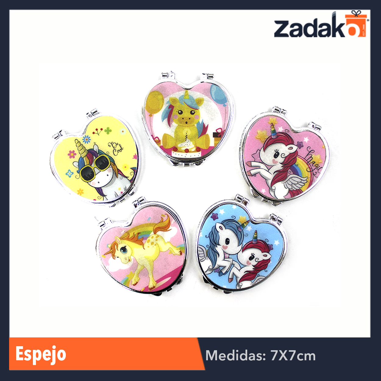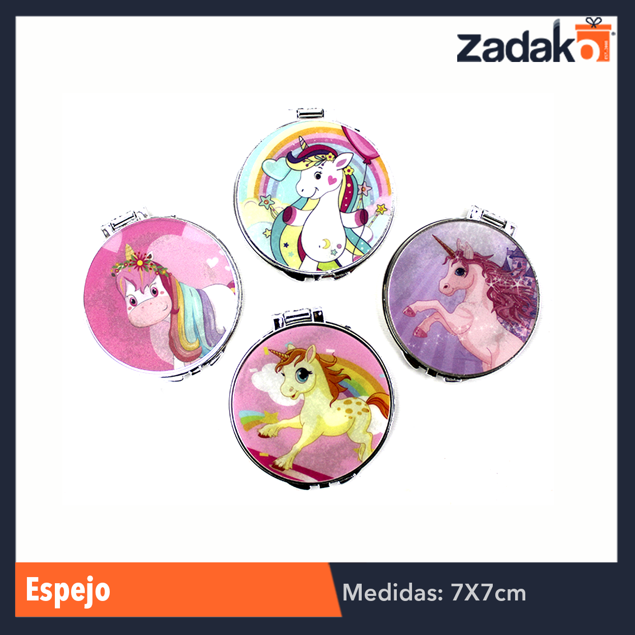 ZB-0056 ESPEJO DE BOLSILLO UNICORNIO, CON 1 PZS, O CAJA CON 600 PZS.