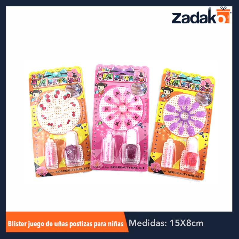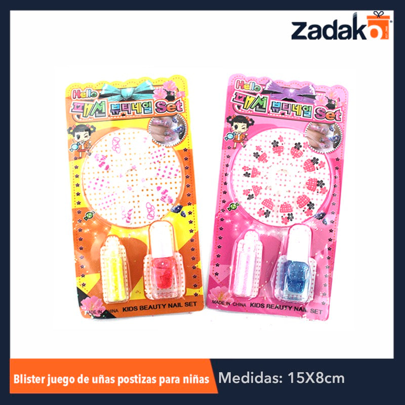 ZB-0122 BLISTER JGO DE UÑAS POSTIZAS P/NIÑA, CON 1 PZ O CAJA CON 864 PZS
