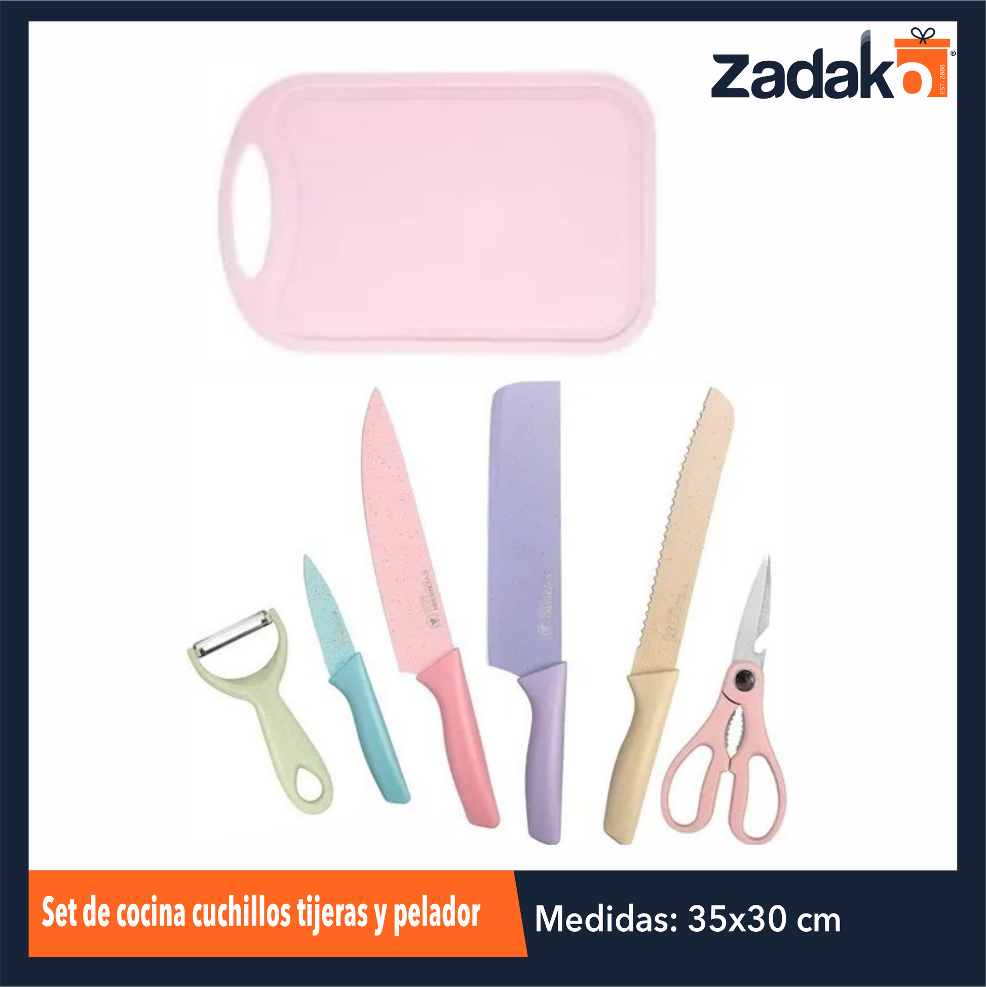 ZC-0429 SET DE COCINA CUCHILLOS TIJERAS Y PELADOR DE 6 PZS O CAJA CON 30 PZS