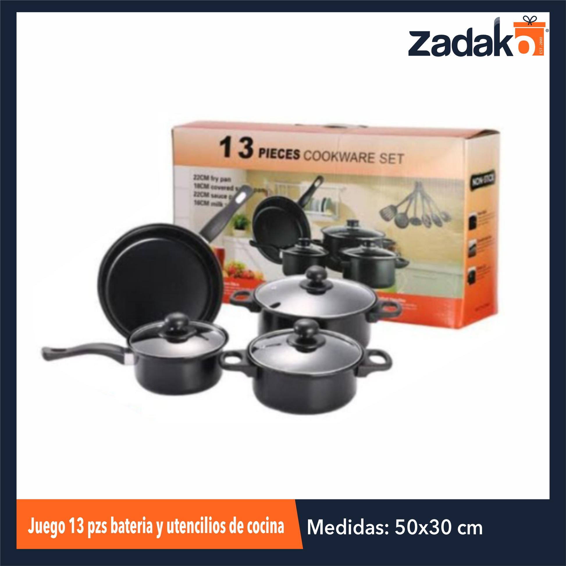 ZC-0443 JUEGO 13 PZS BATERIA Y UTENCILIOS DE COCINA, CON 1 PZ O CAJA CON 10 PZS
