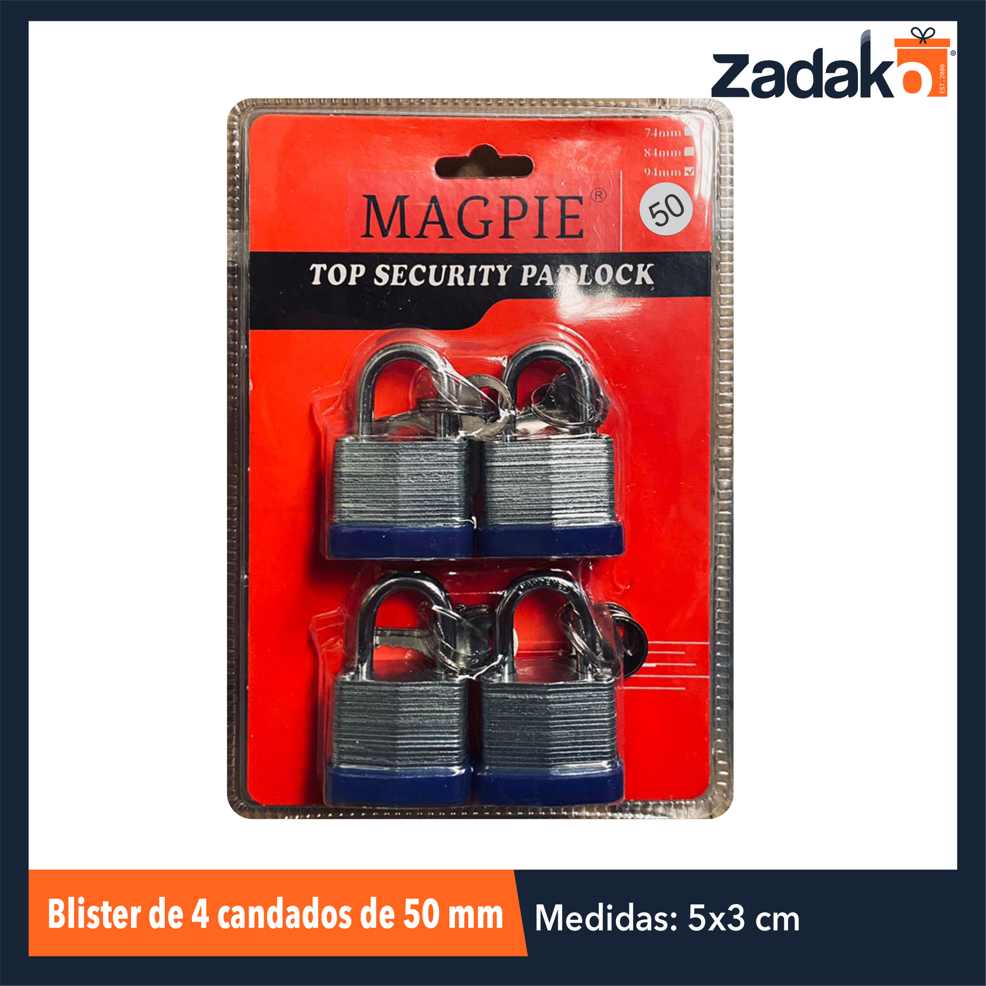ZF-0339 BLISTER DE 4 CANDADOS DE 50 MM CON 1 PZ O CAJA CON 12 PZS