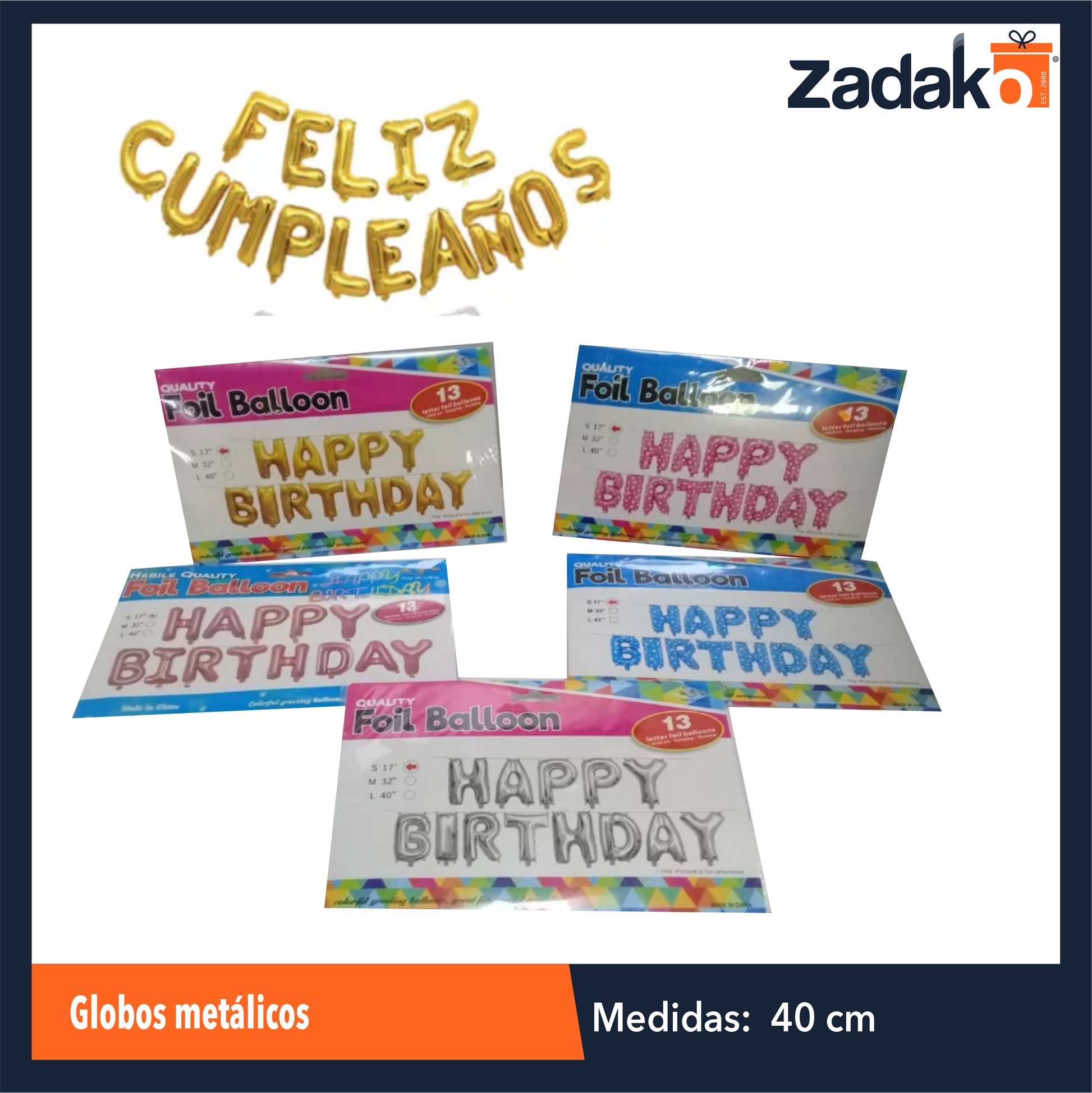 GPM-8965 ZFI-0120 GLOBOS METALICOS FELIZ CUMPLEAÑOS CON 1 PZ O CAJA CON 300 PZS