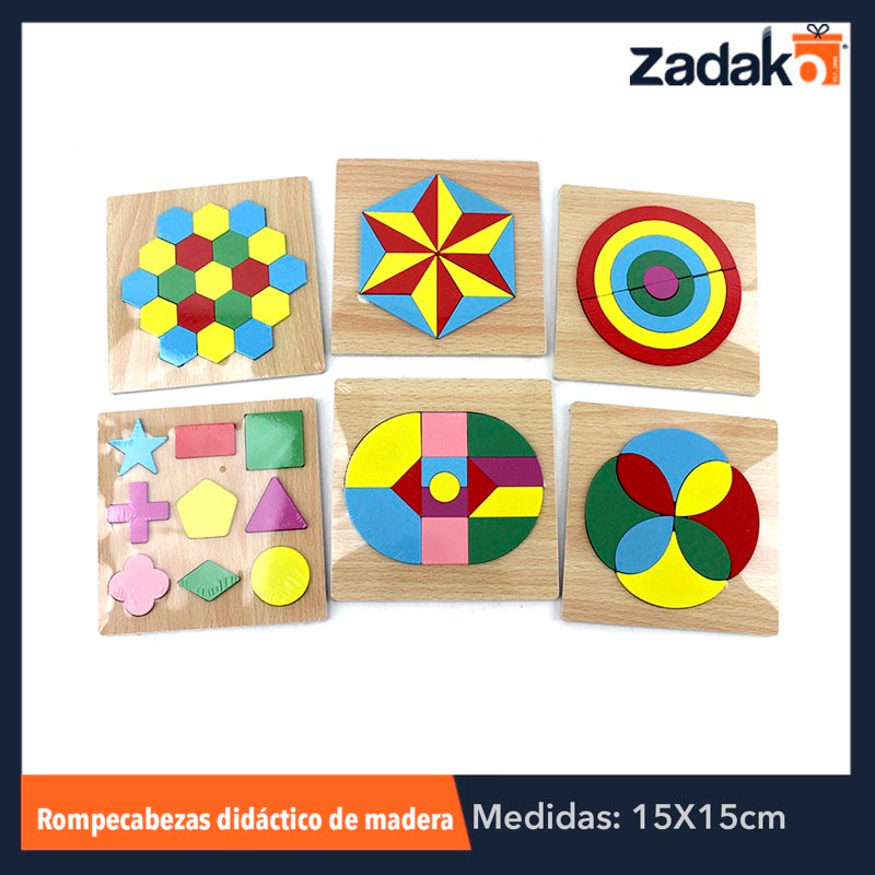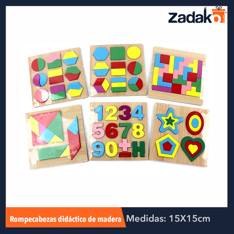 ZJ-0436 ROMPECABEZAS DIDACTICO DE MADERA COLORIDO DE APRENDIZAJE DE 15X15 CM, CON 1 PZ O CAJA CON 200 PZS