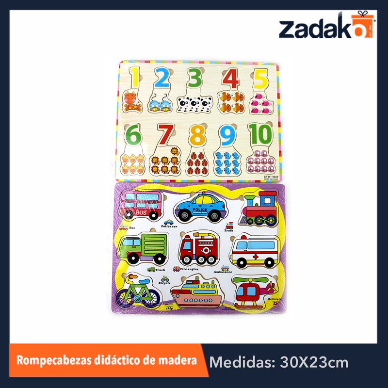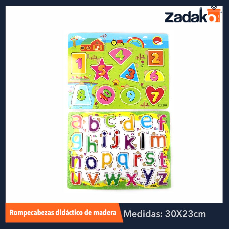 ZJ-0437 ROMPECABEZAS DIDACTICO DE MADERA INFANTIL DE ALFABETICO O NUMERICO DE 30X22.5 CM, CON 1 PZ O CAJA CON 100 PZS