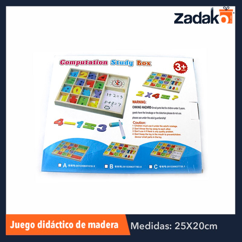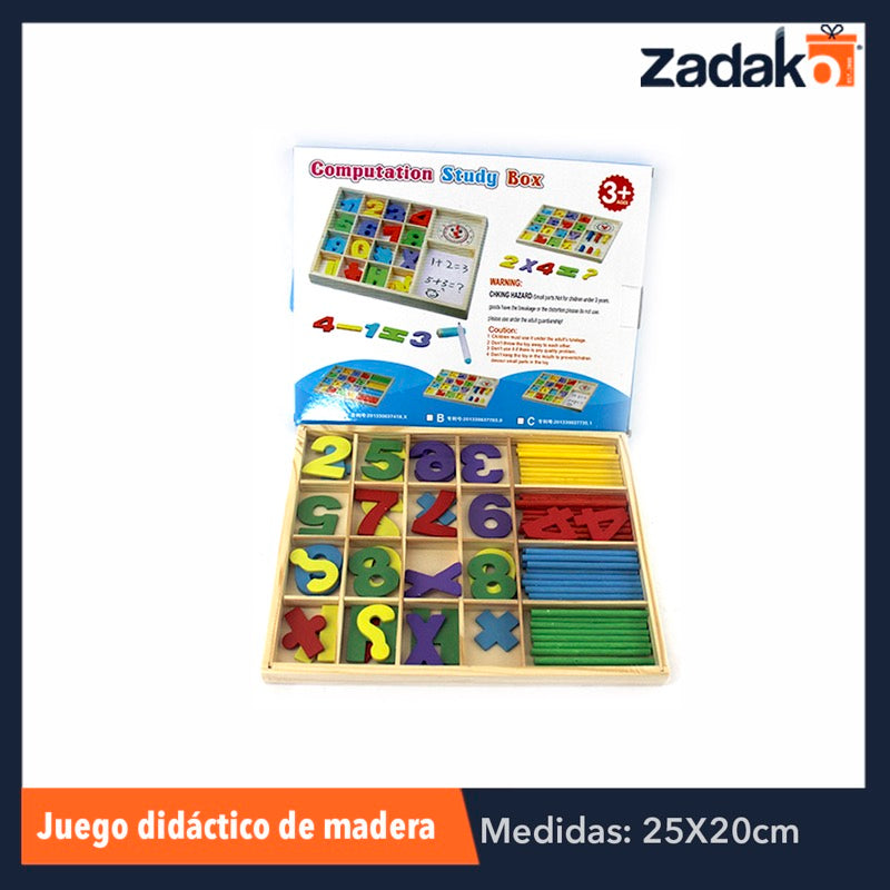 ZJ-0442 CAJA DIDACTICA DE MADERA CON NUMEROS PARA APRENDIZAJE DE MATEMATICAS DE 25X20 CM, CON 1 PZ O CAJA CON 120 PZS