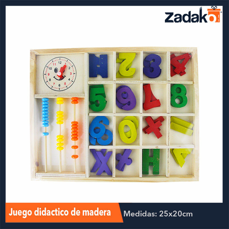 ZJ-0993 CAJA DE MADERA CON NUMEROS, ABACO Y RELOJ, PARA APRENDIZAJE DE MATEMATICAS DE 20X24CM, CON 1 PZ O CAJA CON 120 PZS