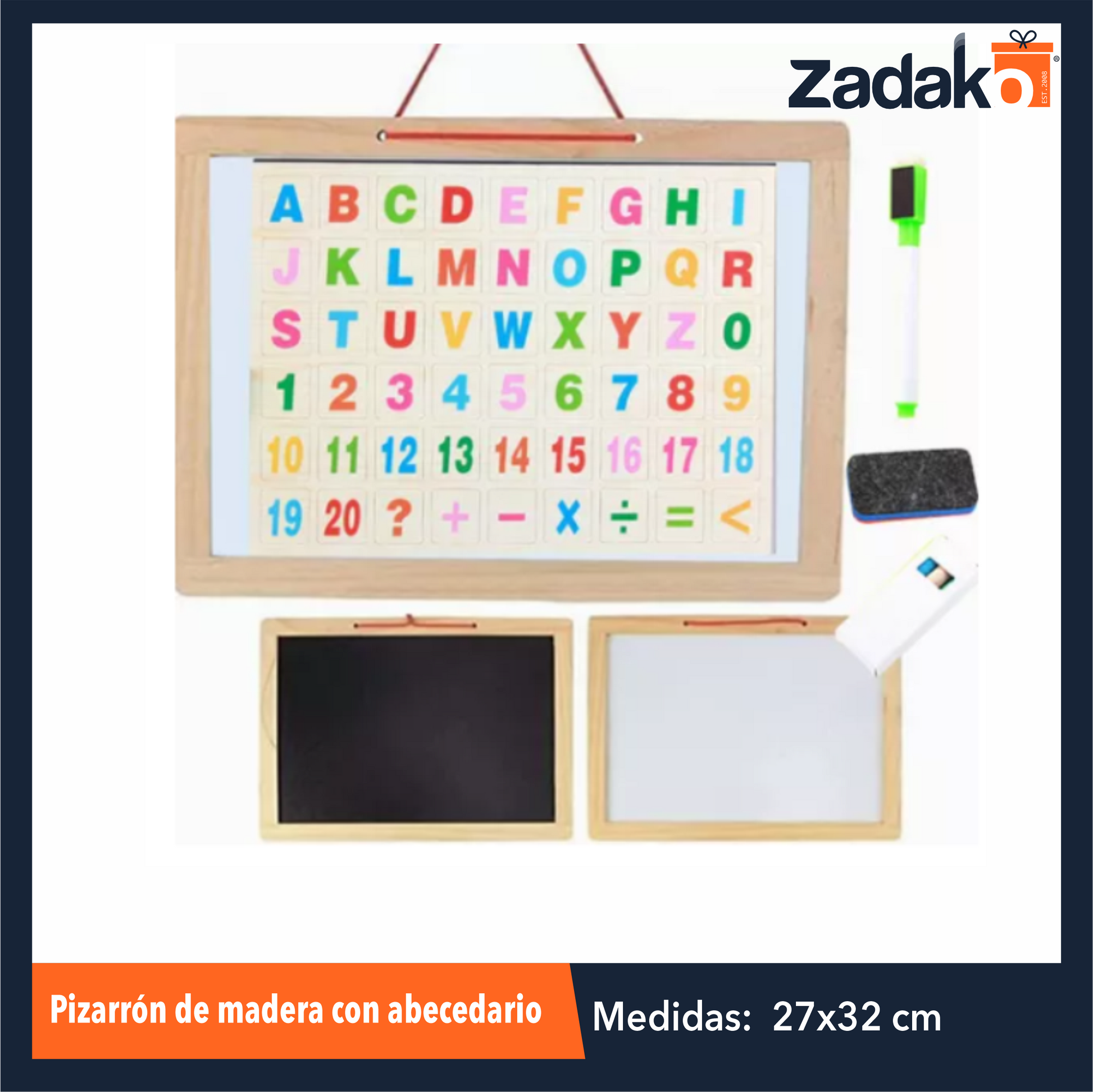 ZJ-1357 PIZARRON DE APRENDIZAJE DE MADERA CON FICHAS DE ABECEDARIO, NUMEROS Y SIMBOLOS MATEMATICOS DE 27.3 X 20.5 X 1.1 CM CON 1 PZ O CAJA CON 100 PZS