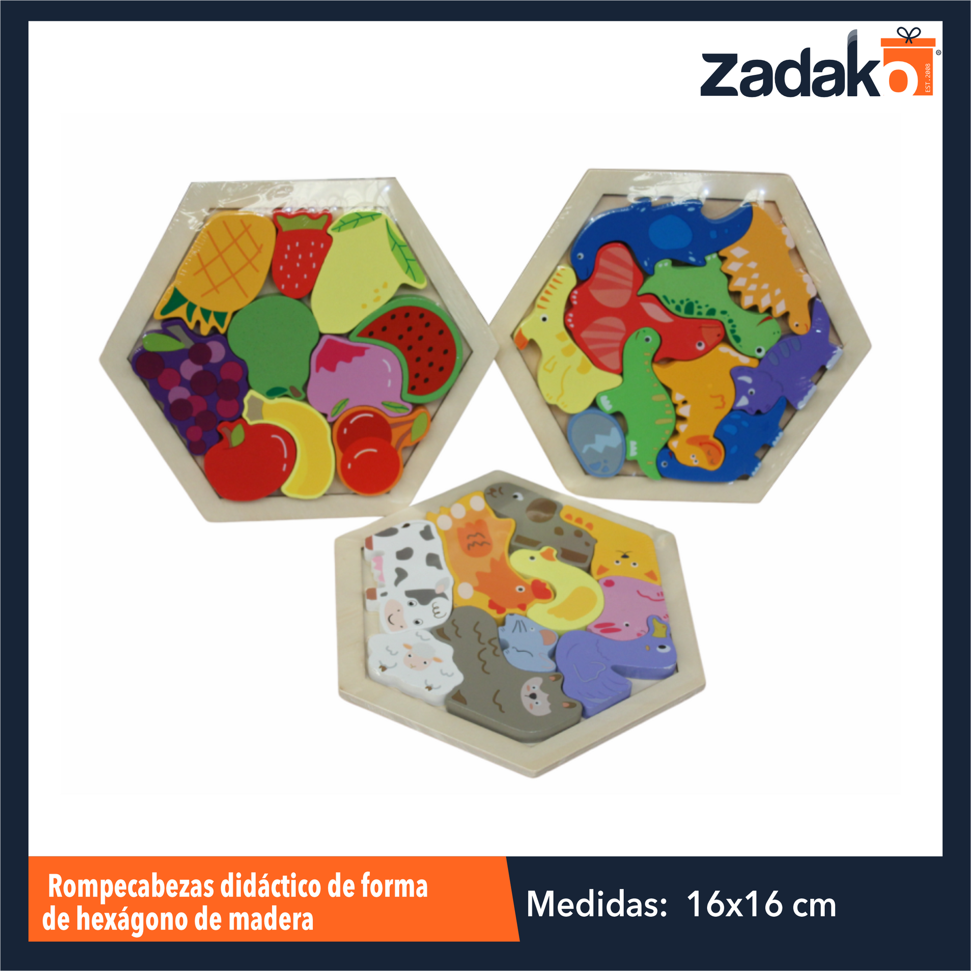 ZJ-1404 ROMPECABEZAS DIDACTICO DE FORMA DE HEXAGONO DE MADERA DE 16 X 16 X 0.3 CM CON 1 PZ O CAJA CON 120 PZS
