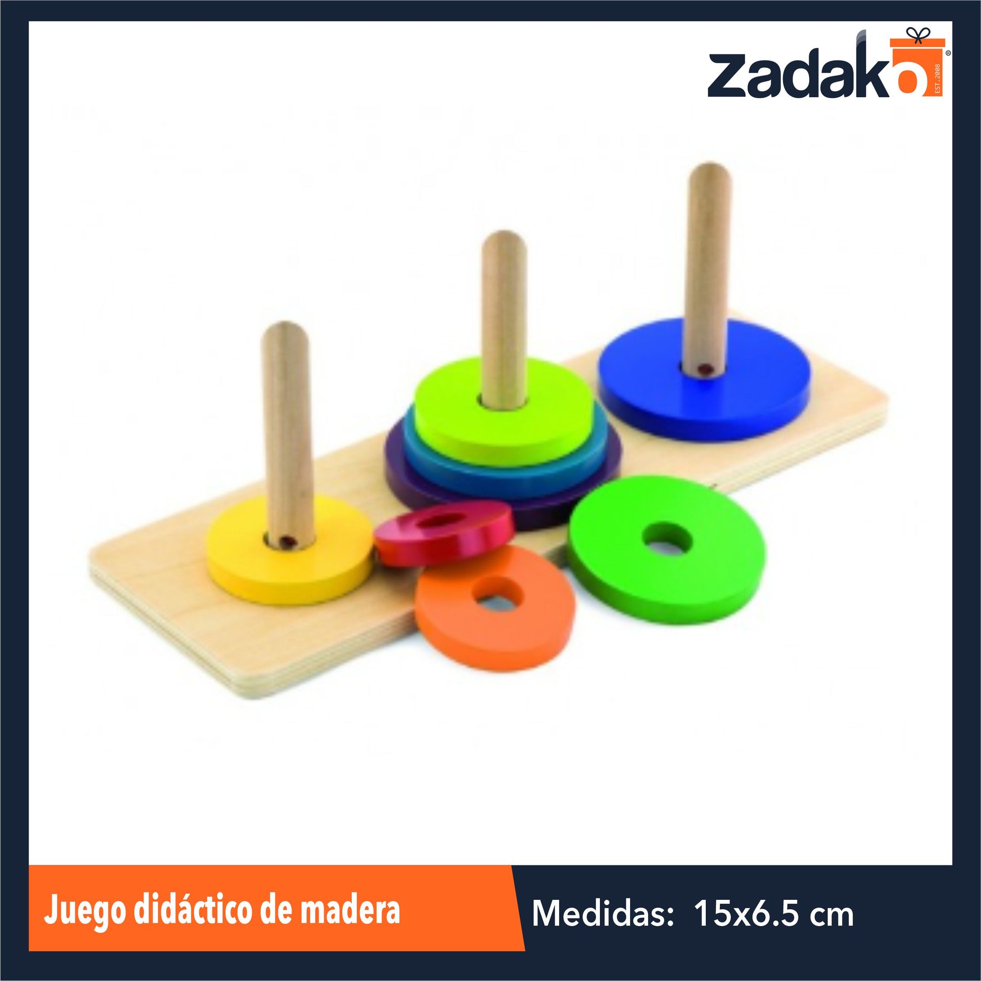 ZJ-1415 JUEGO DIDÁCTICO DE MADERA DE 3 TORRES CON FICHAS CIRCULARES DE 15 X 6.5 X 0.7 CM CON 1 PZ O CAJA CON 120 PZS