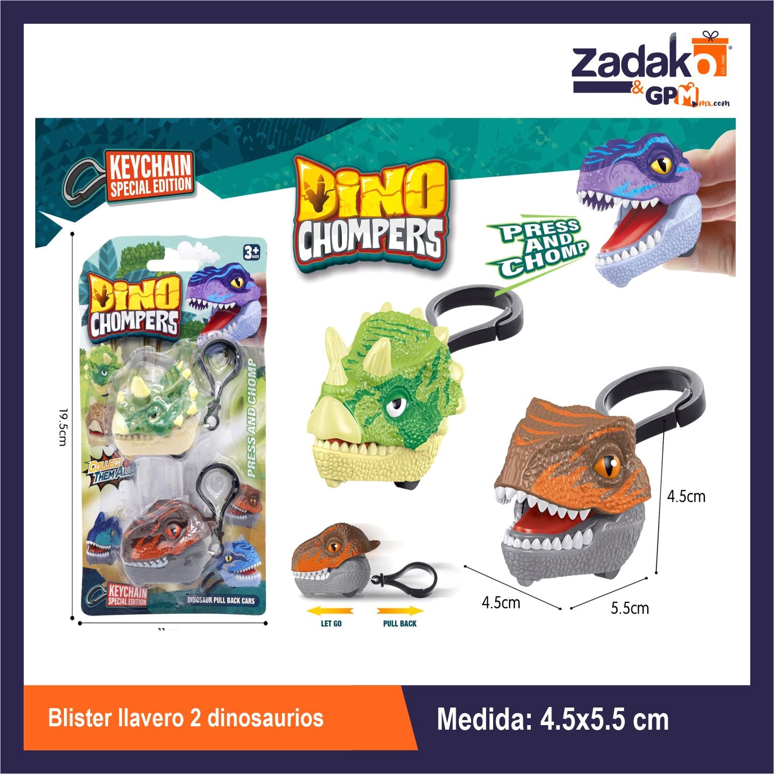 ZJ-2418 BLISTER LLAVERO 2 DINOSAURIOS CON 1 PZ O CAJA CON 288 PZS