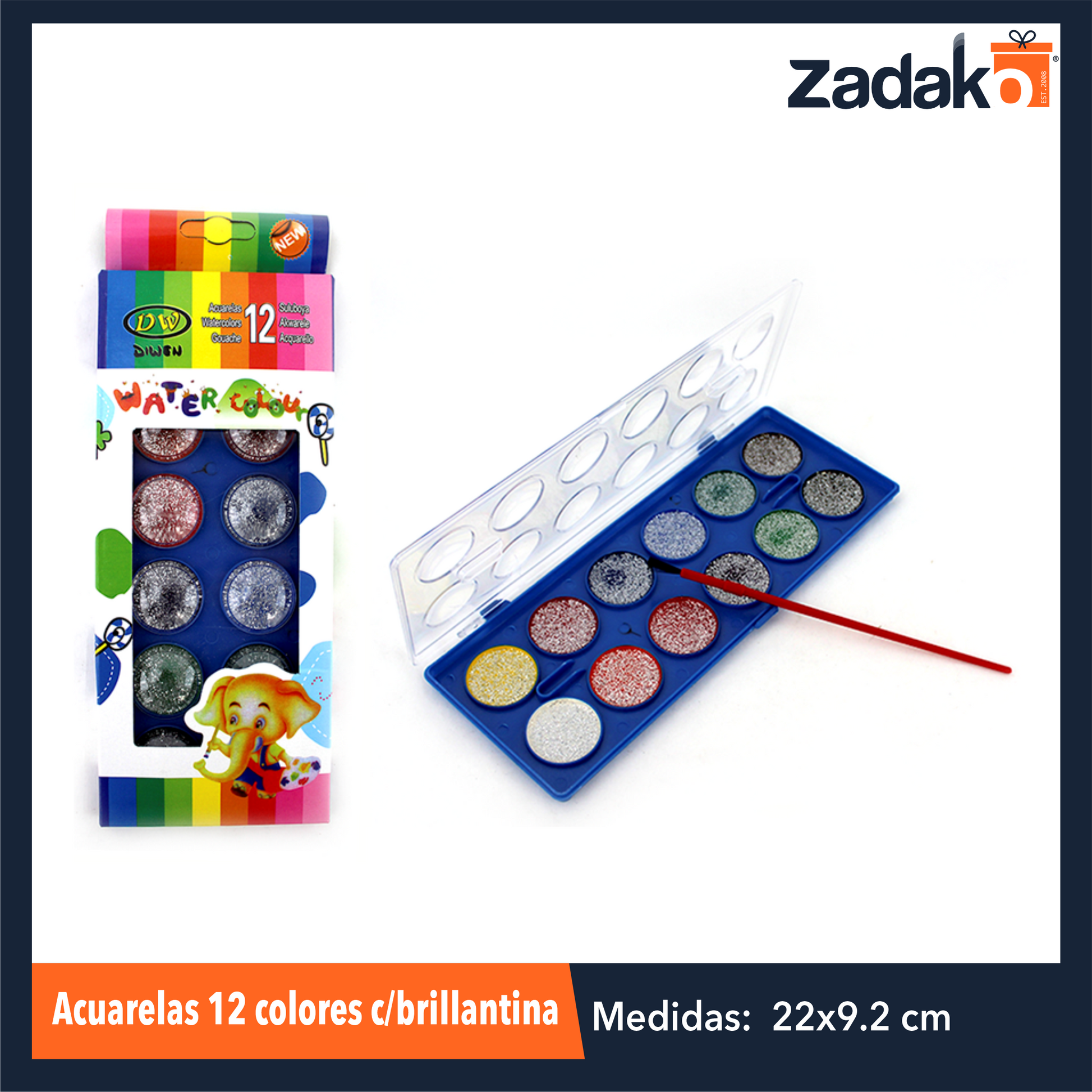 ZP-0480 ACUARELAS 12 COLORES C/BRILLANTINA, CON 1 PZ O CAJA CON 144 PZS