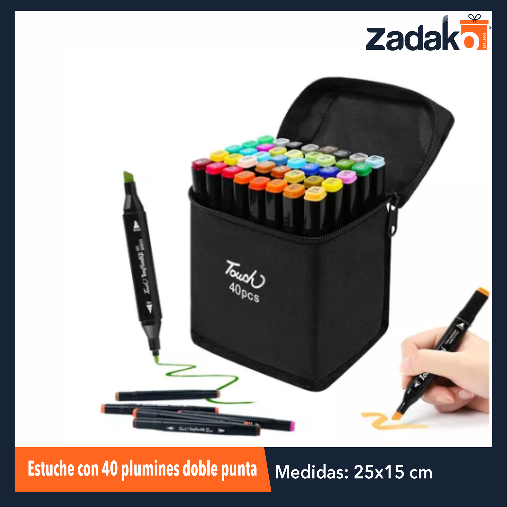 ZP-1000 ESTUCHE CON 40 PLUMINES DOBLE PUNTA, CON 1 PZ O CAJA CON 36 PZS