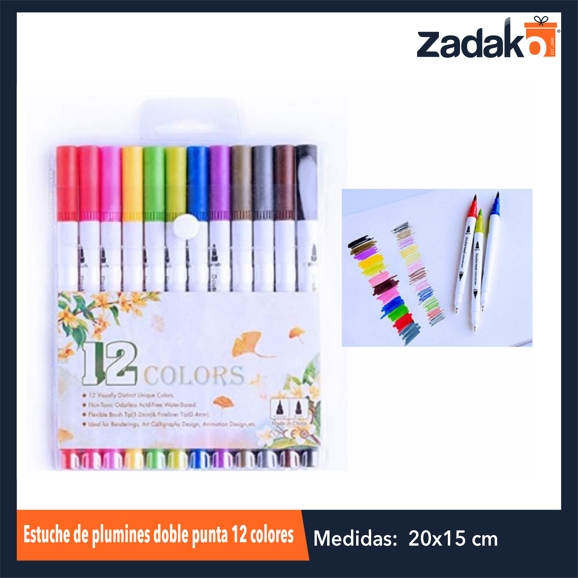 ZP-1033 ESTUCHE DE PLUMINES DOBLE PUNTA 12 COLORES CON 1 PQT O CAJA CON 120 PQTS
