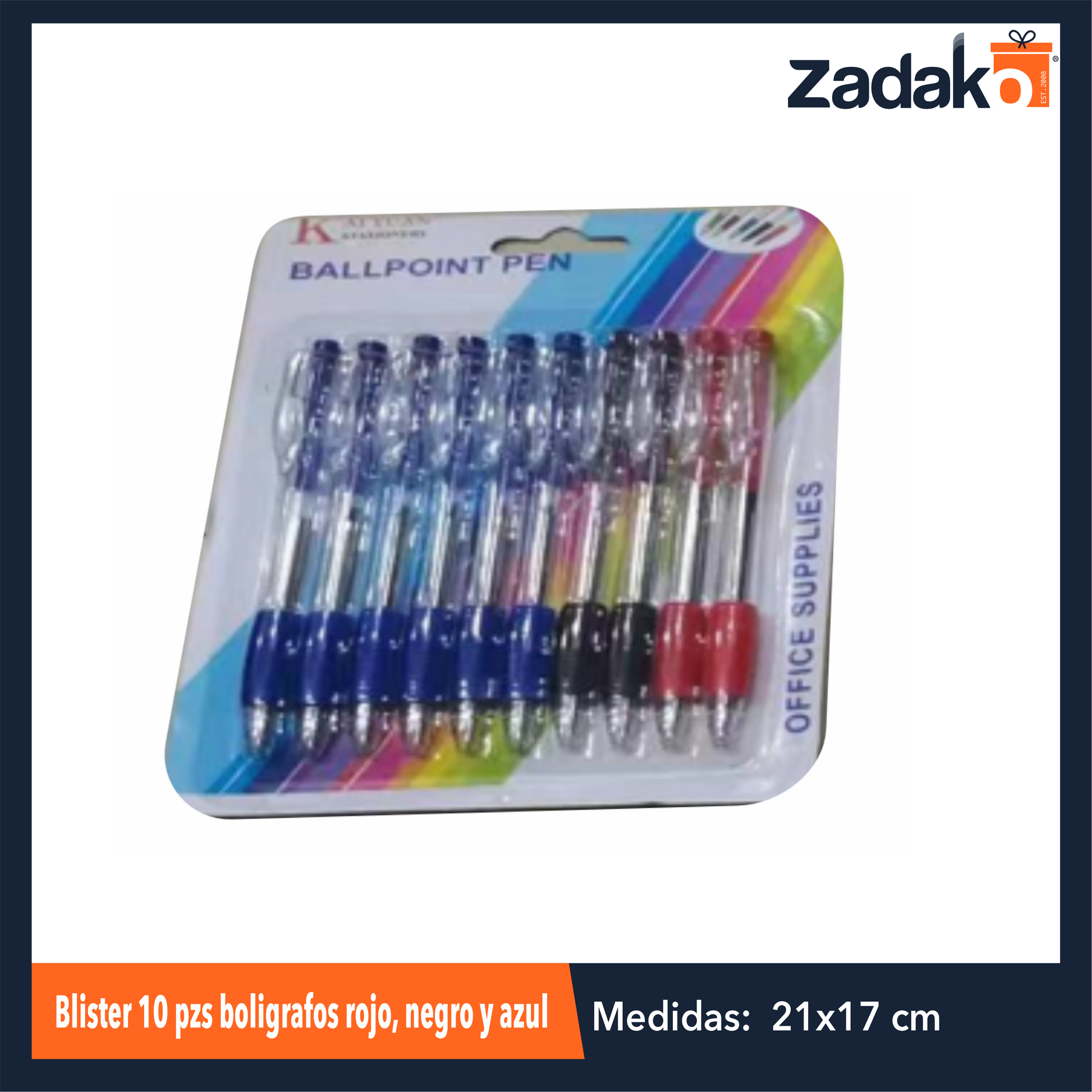 ZP-1143 BLISTER 10 PZS BOLIGRAFOS ROJO, NEGRO Y AZUL, CON 1 PZ O CAJA CON 288 PZS